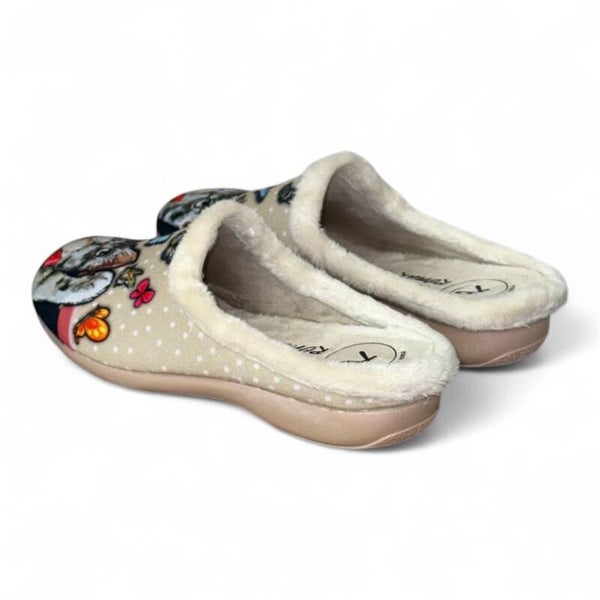 Su diseño destalonado permite un calce rápido y cómodo, ideal para el uso diario en casa. La suela vulcanizada de goma antideslizante proporciona una excelente adherencia y resistencia al desgaste, perfecta para moverse con seguridad por todo tipo de suelos interiores.