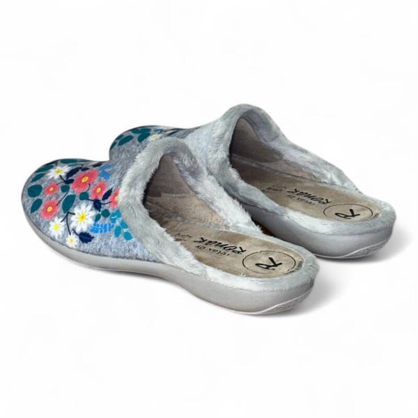 Su diseño destalonado permite un calce rápido y cómodo, ideal para el uso diario en casa. La suela vulcanizada de goma antideslizante proporciona una excelente adherencia y resistencia al desgaste, perfecta para moverse con seguridad por todo tipo de suelos interiores.